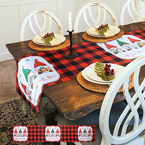 Yisscen Runner da tavola Natalizio, Corridore della tavola di Natale, Decorazioni per la Tavola di Natale Impermeabile, per Casa, Banchetti di Nozze, Sala da Pranzo, Feste(Gnomo di Natale, rosso)
