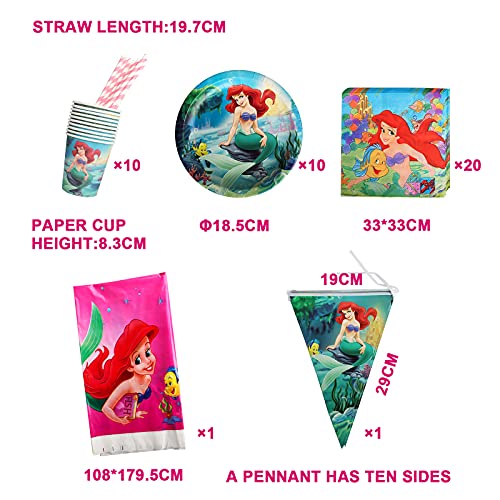 Yisscen Stoviglie per Feste di Compleanno per Bambini Kit Festa Compleanno Sirena Set di stoviglie per feste piatti, tazze, tovaglioli, tovaglie, cannucce, gagliardetti (52 Pezzi, 10 Ospiti)