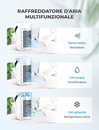 YISSVIC Condizionatore Portatile 4 in 1, Climatizzatore Raffreddatore D'aria Air Cooler Silenzioso, 7 Colori/3 velocità/480ml Serbatoio dell'acqua