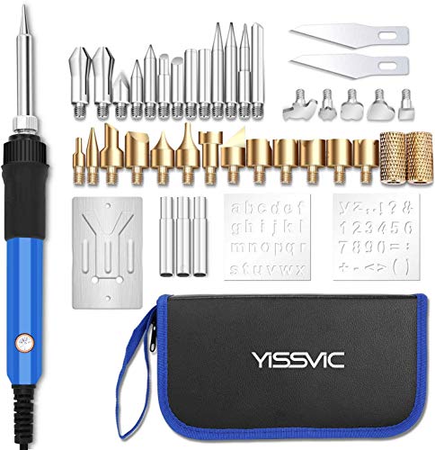 Yissvic Kit Pirografia Legno 42 Pezzi [ Regalo di Natale ] Temperatura Regolabile Set Pirografia Legno per Intagliare Sughero Cuoio ed Altro per il Fai Da Te 60W 220-240V