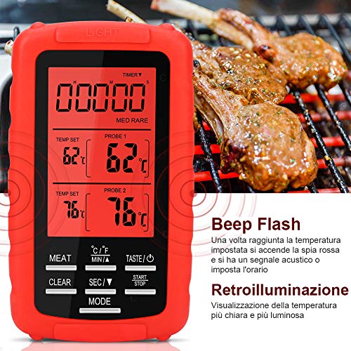 Doppia sonda - Ill termometro da cucina professionale Yissvic è molto preciso, e necesita solo di pochi secondi per ottenere la temperatura. Grazie allesonde doppie, è possibile controllare due diversi tipi di carne o cibo contemporaneamente.Due modalita' di impostazione della temperatura: preimpostata e manuale
