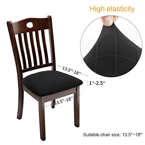 YISUN Coprisedili per Sedie da Pranzo Senza Schienale in Jacquard, Elasticizzato Copriseda per Sedia, Lavabili e Rimovibili per Sedie Alte da Ufficio 4/6 Pezzi (Nero, 6)