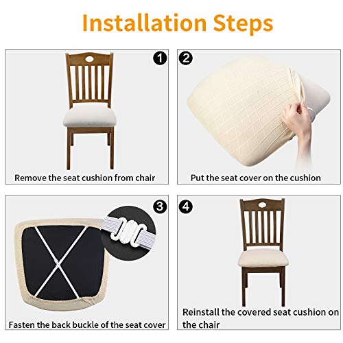 YISUN Coprisedili per Sedie da Pranzo Senza Schienale in Jacquard, Elasticizzato Copriseda per Sedia, Lavabili e Rimovibili per Sedie Alte da Ufficio 4/6 Pezzi