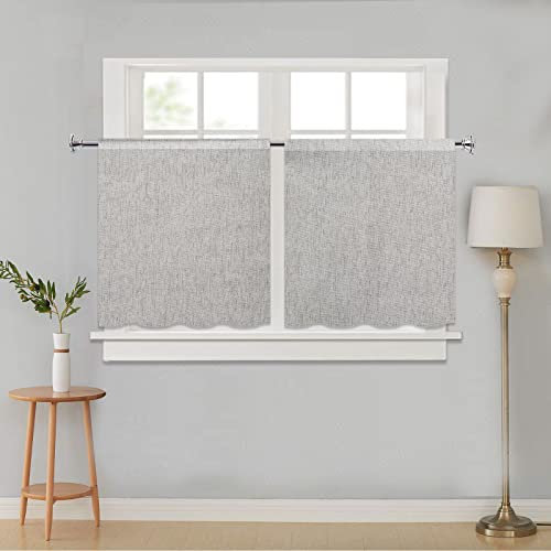 YISURE Tenda da finestra cucina corta in lino, colore grigio, per soggiorno, camera da letto, finestre, 90 cm di larghezza e 90 cm di altezza, set da 2