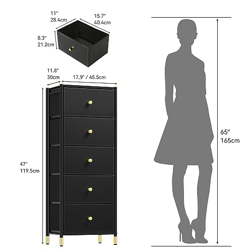 YITAHOME cassettiera camera letto in tessuto a 5 Pelle PU cassetti verticale, cassettiera con ampio spazio interno facile da installare,per camera da letto, soggiorno, camera da bimbo, corridoio, nero
