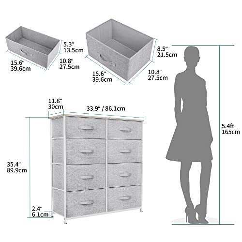 YITAHOME Cassettiera in tessuto, armadietto con 8 cassetti, Cassettiera per Corridoio in Tessuto, con vano contenitore in tessuto per soggiorno, camera da letto, cameretta dei bambini, grigio chiaro