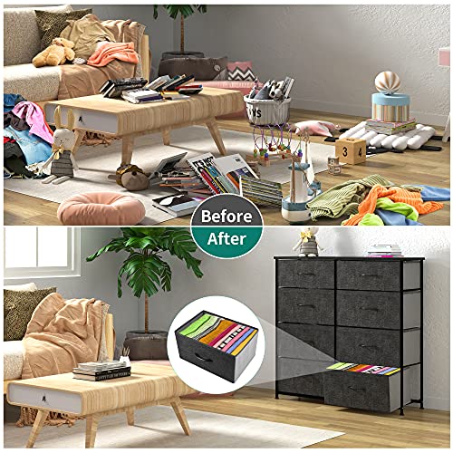 YITAHOME Cassettiera in tessuto, armadietto con 8 cassetti, Cassettiera per Corridoio in Tessuto, con vano contenitore in tessuto per soggiorno, camera da letto, cameretta dei bambini, grigio nero