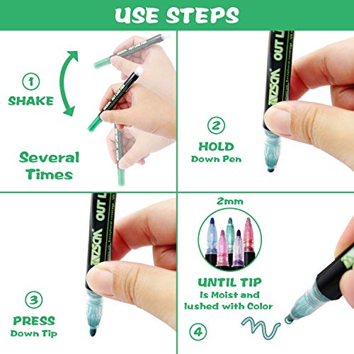 ✏Doppio Due Linee-I nostri pennarelli sono dotati di linee doppie automatiche uniche, i pennarelli hanno un design speciale - una penna con 3 risultati diversi. Quando si scrive su carta bianca, è possibile disegnare due linee allo stesso tempo, argento e colorato. Se si dipinge su carta scura/nera, mostra solo il colore argento quando si dipinge su una superficie liscia, mostra solo il colore colorato.