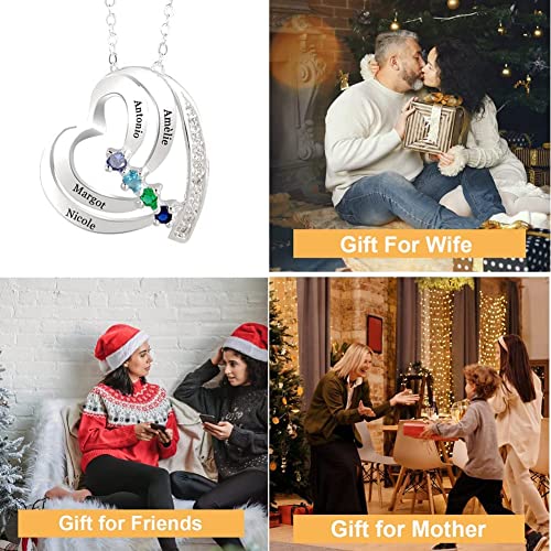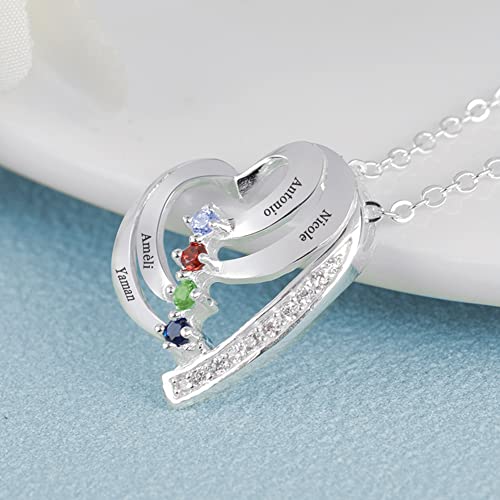 Yitoes Personalizzato Collana 925 Sterline Argento Donna Madre Figlia Cuore Ciondolo con Nome Incise Collana Regalo per la Festa della Mamma San Valentino Natale (4 nome)
