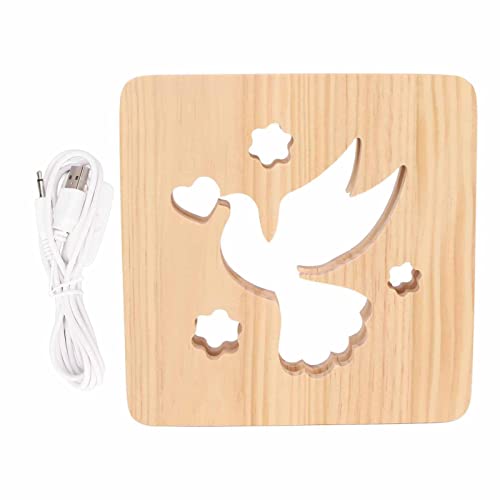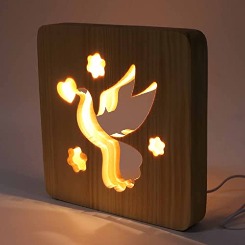 Yitre Lampada da Intaglio in Legno 3D, Modello Colomba della Pace Lampada in Legno 3D Vuota Luce Bianca Calda per Camerette per Bambini