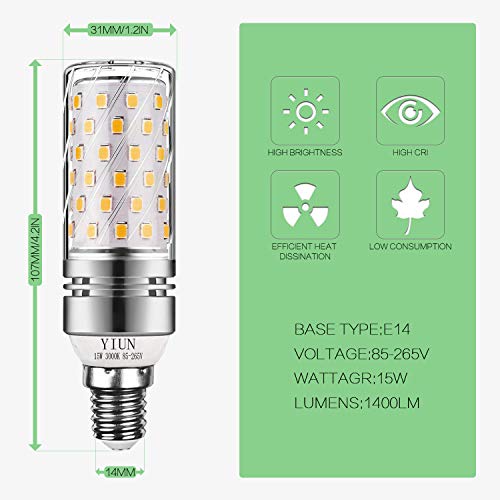 Yiun E14 Lampadine di Mais a LED 15W, Lampadine a Incandescenza da 120W Equivalenti, 3000K Bianco Caldo, Non Dimmerabile, 1400Lm, Piccola Vite Edison Lampadine Mais, 4-Pacco