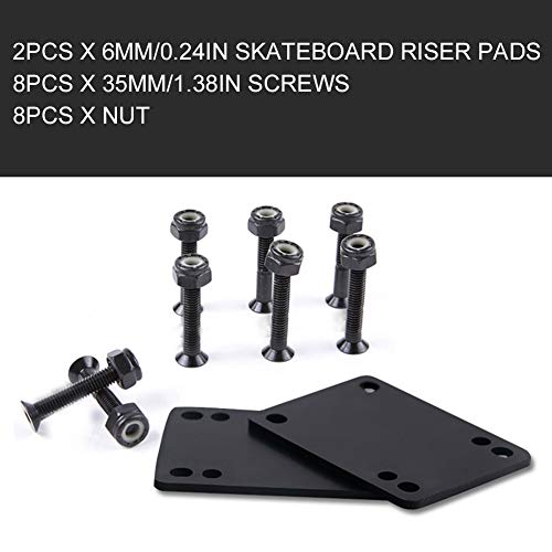 Yius Longboard Riser Pad Skateboard Standard Riser Pad con viti di montaggio Hardware di ricambio bulloni Set di 3 mm, 6 mm Angolare Cuneo Riser Pad Accessori per Skateboard