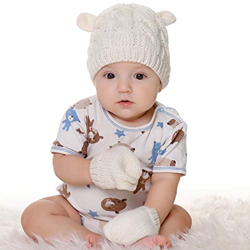 Yixda Set di berretto e guanti da neonato, per bambini, invernale, lavorato a maglia bianco 2 0-3 Mesi