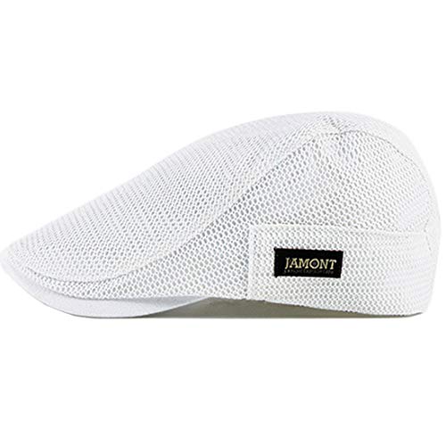 Yixda Berretto da uomo con visiera piatta, estivo, in rete bianco Taglia unica