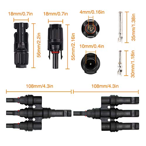 YIXISI Connettore, T Branch Connector/Adattatore,Maschio/Femmina T di Tipo 3 Pannello Solare Branch Cavi Fotovoltaici Connettori