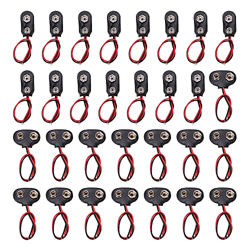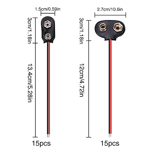 Quantità sufficiente: 30 connettori a clip per batteria da 9V (15 pezzi di tipo T e 15 pezzi di tipo I), con cavo volante da 10cm.