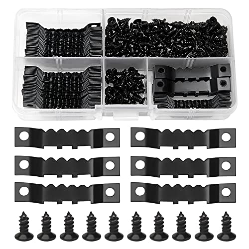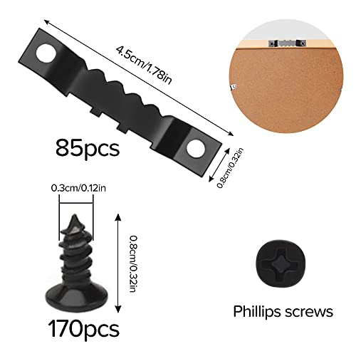 YIXISI 85 Pezzi Cornice a Dente di Sega + 170 Pezzi Viti, Invisibili Ganci Dente di Sega con Due Fori, per Foto Segni Montaggio a Parete Orologio da Parete Artigianato, Nero(45 x 8 mm)