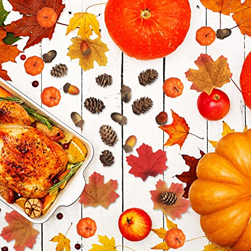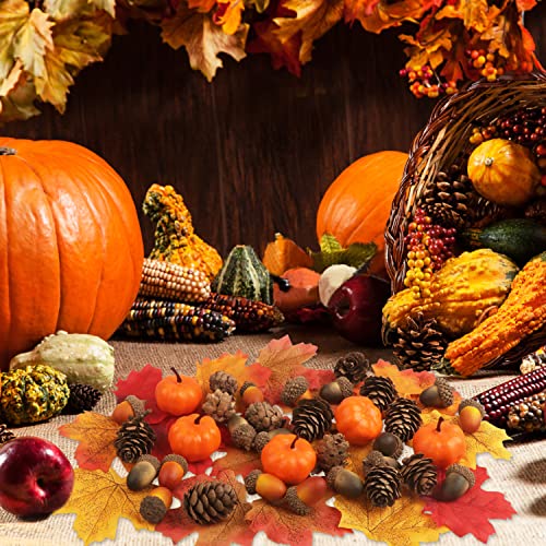 YiYa 150 pezzi Decorazione pigne del Ringraziamento con mini zucche Ghiande artificiali Foglie d'acero per feste autunnali Feste del Ringraziamento Decorazioni per matrimoni a casa