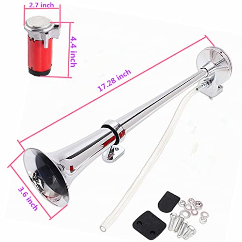YIYDA Tromba d'aria Tromba d'aria Car Horn 150db Altoparlante a tromba a tubo singolo in zinco cromato 24V Tromba in zinco cromato con compressore rosso Clacson per 24V camion auto barca moto ecc