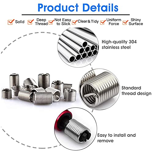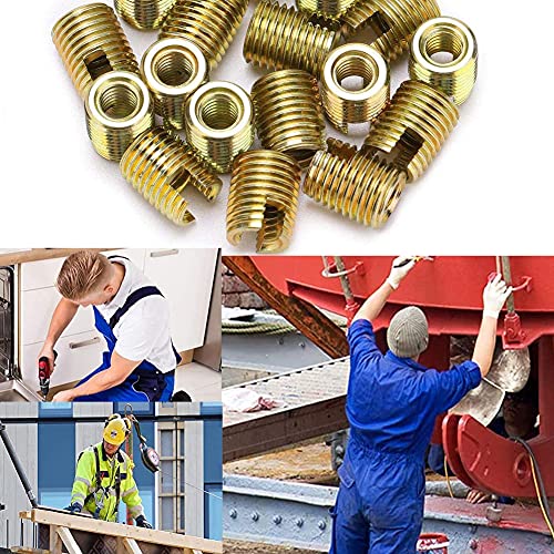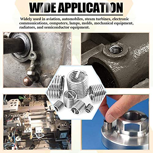 ALTE PRESTAZIONI: Inserti filettati tipo autofilettante ampia area di contatto, può sopportare forti tensioni, un buon effetto sismico, più forte e non facile da allentare. non devono essere pre-maschiati, possono essere utilizzati direttamente dallo strumento di installazione per avvitarlo in un foro specifico.