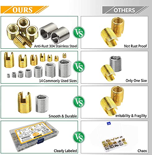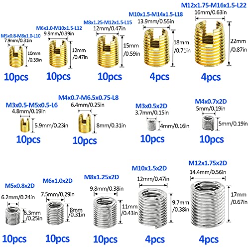 CONFEZIONE INCLUSA: La confezione include M3 M4 M5 M6 M8 M10 M12 inserti filettati autofilettanti da 116 pezzi e Inserti Filettati da 116 pezzi. C'è anche una scatola di immagazzinaggio per un facile smistamento e utilizzo. Non devi preoccuparti di confonderli. per soddisfare le vostre diverse esigenze.