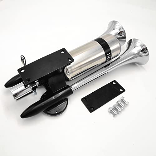 YIYIDA Clacson per auto Clacson per barca 175DB Tromba a doppio tubo Tromba d'aria Clacson per camion argento Serbatoio d'aria in acciaio inossidabile Adatto Car Horn per 24V 12V auto yacht RV ecc