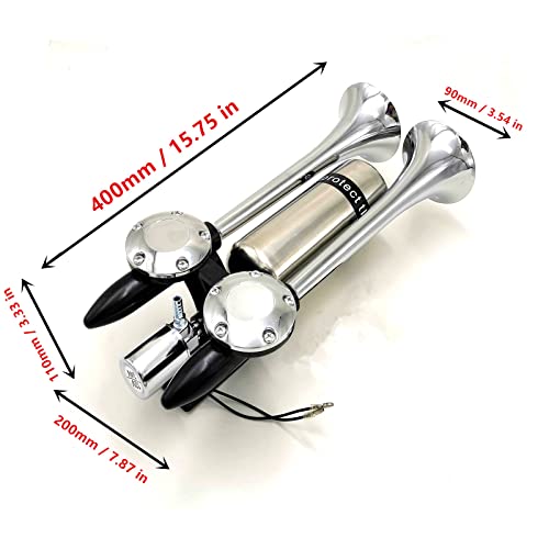 ✔ Tromba di grande diametro, design a doppio tubo, suono più forte e diffusione più ampia! Il corno richiede una fonte d'aria aggiuntiva. L'altoparlante è facile da installare, basta installarlo sul compressore d'aria. L'elegante combinazione argento e nero ti dà una sensazione diversa!