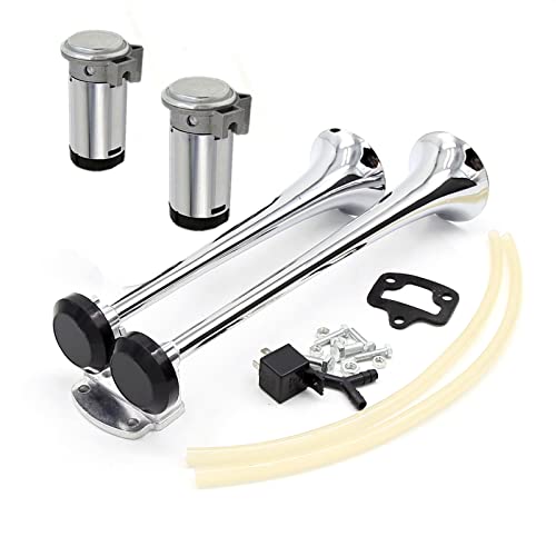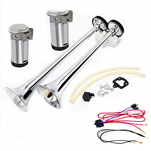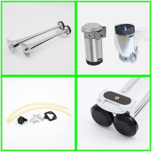 YIYIDA Clacson per auto Tromba ad aria Argento 165DB Horn Tromba per camion Tromba tono alto e tono basso Tromba a doppio tubo Zinco cromato Due pompe d'aria Altoparlante per 12V barca yacht RV ecc