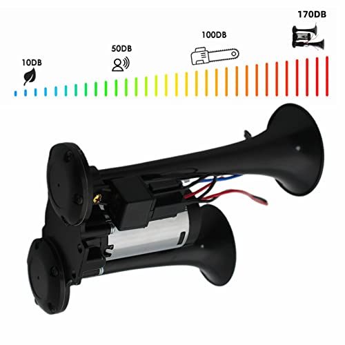 YIYIDA Clacson per camion Air Horn 24V Clacson per auto a doppio tubo nero 170db Car Horn Corno impermeabile Trombe a tono alto e basso Allarme Corno Corno del camion per 24V nave SUV Moto yacht ecc
