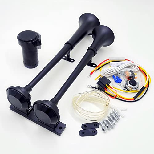 ♥ Il clacson a doppio tubo da 12 V non richiede un'alimentazione d'aria aggiuntiva. Tromba di grosso calibro, design a doppio tubo, suono più forte e diffusione più ampia! Il kit tromba pneumatica include clacson, tubo flessibile, relè, fusibile, cablaggio e hardware di installazione di base.