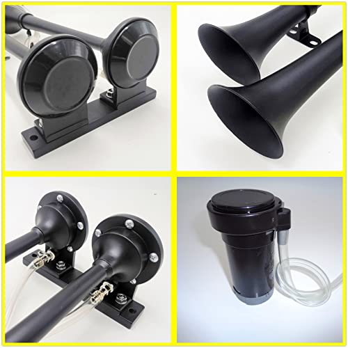 YIYIDA Tromba ad aria Tromba per camion nero 165DB Clacson per nave Tromba elettrica 45cm Tromba tono alto e tono basso Tromba a doppio tubo Zinco cromato Compressore per 12V barca auto yacht RV ecc