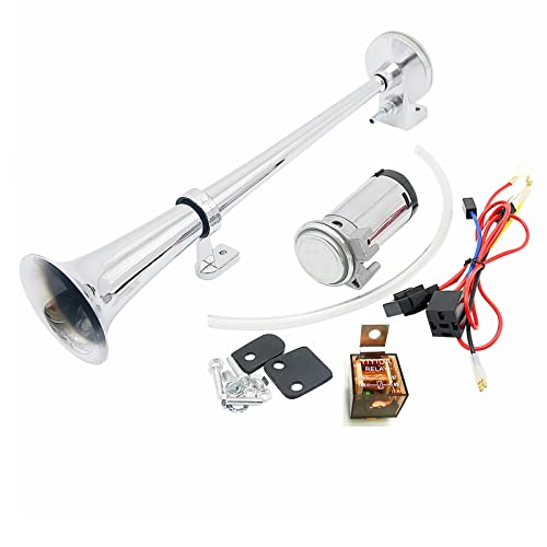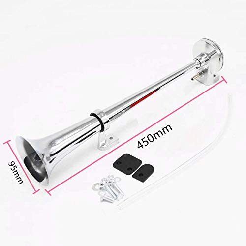YIYIDA Tromba d'aria Car Horn Tromba per auto Argento 45cm Altoparlante Tromba singola in zinco cromato Tromba per camion con compressore Tromba d'aria per 24V Auto Camion Treno Barca Motocicletta ect