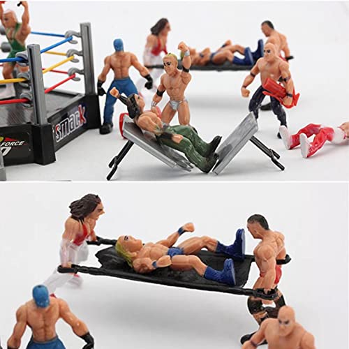 Set completo di giocattoli da wrestling: questo set di giocattoli da wrestling può essere posizionato a piacimento e include 1 anello, 12 figure e 1 set di accessori.