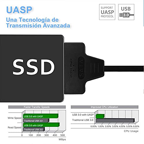 Velocità di trasferimento rapido con UASP: l'adattatore SATA a USB supporta velocità di trasferimento dati USB 3.0 da 5 Gbps. Ma puoi sperimentare velocità di trasferimento fino al 70% più veloci rispetto all'USB 3.0 convenzionale, quando è collegato a un computer che supporta anche UASP