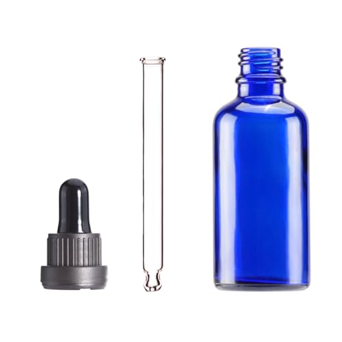 [50ml Boccette con Contagocce] Flaconi Contagocce in vetro è blu, per proteggere l'olio essenziale dai raggi UV. Realizzato in vetro di alta qualità. SENZA BPA. Ricaricabile, lavabile e adatto ai viaggi.