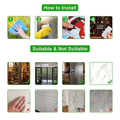【Facile da Usare】Natale Adesivi Vetro può essere applicato a qualsiasi superficie liscia, pulita e asciutta di pareti, finestre, vetro, frigoriferi, ecc, non adatto per superficie sporca o ruvida.