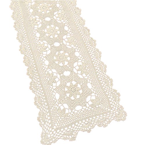 Yizunnu - Runner da tavola fatto a mano, in pizzo, in cotone, colore: beige, 40 x 180 cm