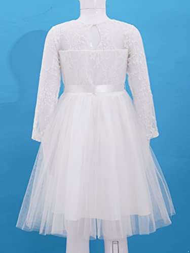 YiZYiF Bambina Vestito Cerimonia Elegante Pizzo Floreale Abito da Sera Festa di Compleanno a Maniche 3/4 Vestito da Sposa con Cintura 3D Fiore Bowknot Matrimonio Pearl White 12 Anni