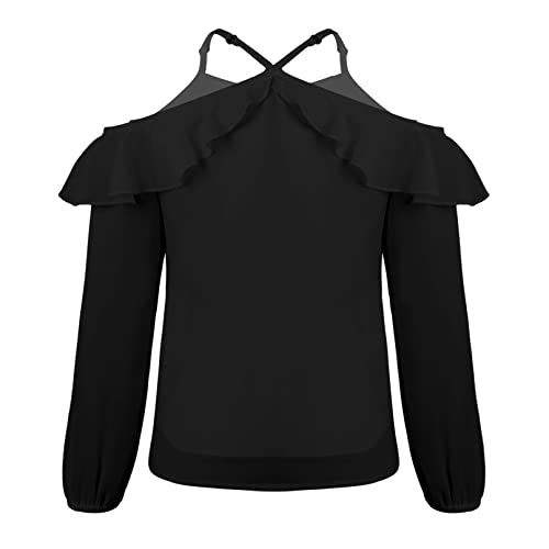 YiZYiF Blusa Bambina in Pizzo/Chiffon Camicia Elegante Camicetta Floreale Comodo Estate T-Shirt Casual Manica a Campana Bianca Crop Top per Scuola Tempo Libero 4-16 Anni Nero B 7-8 Anni