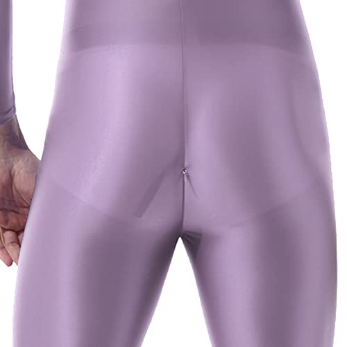 YiZYiF Body da Uomo Tuta Intera Lunga Leotard Bodysuit Unitard Catsuit da Uomo con Cerniera Inferiore Leggings Tuta da Ginnastica Jumpsuit Underwear Sportswear Allenamento Lanvanda B Taglia Unica