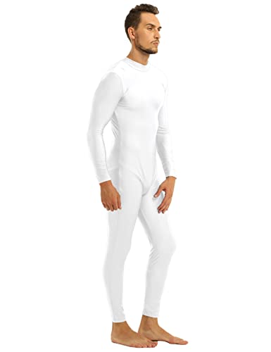 YiZYiF Body da Uomo Tuta Intera Lunga Leotard Bodysuit Unitard Catsuit da Uomo con Cerniera Inferiore Leggings Tuta da Ginnastica Jumpsuit Underwear Sportswear Allenamento Bianco XXL