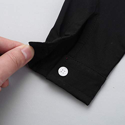 Maniche lunghe, design con risvolto, scollo con un papillon cucito, bottoni sul davanti e polsini per vestirsi facilmente.