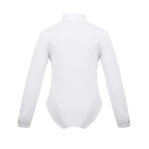 YiZYiF Camicia da Ballo Latino Tango Abito Danza Classica Bambino Maniche Lunghe con Papillon T-Shirt Cotone Camicia Body Costumi Prestazioni Pratica Samba Rumba Dancewear White A 10 Anni