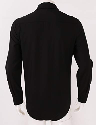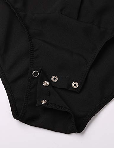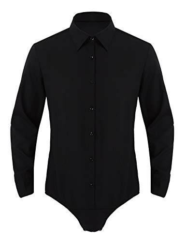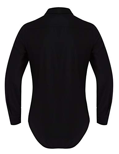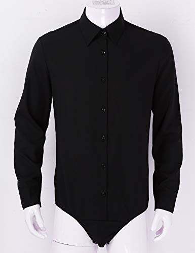 YiZYiF Camicia Body da Danza Latino Moderno Slim Fit Uomo Costumi da Ballo Bottoni di Base Dancewear Tango Samba Rumba Pratica Prestazione Competizione Nero L