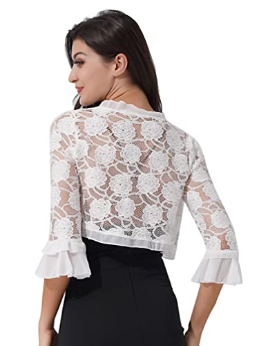 YiZYiF Cardigan Donna Pizzo Floreale Bolero Top Corto da Ballo Maniche Lunghe Coprispalle Elegante Shrug Cappotto Camicia Top Danza del Ventre Giacca Corta per Abito da Sera White- M