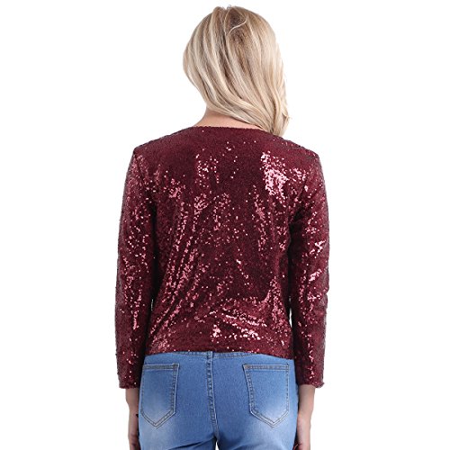 YiZYiF Donna Lustrino Manica Lunga Glitter Giacca Paillettes Bolero Blazer Shrug Cardigan Vintage Cappotto Coprispalle Corta Frontale Aperto Elegante per Festa Clubwear Borgogna Small