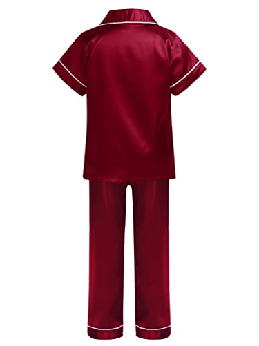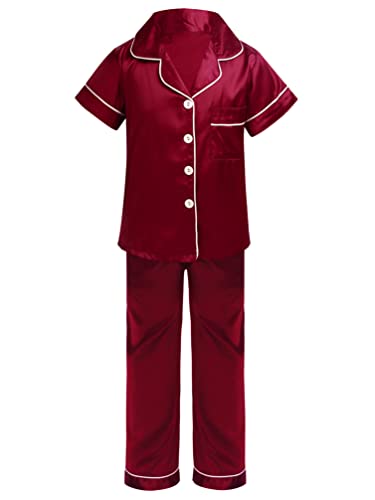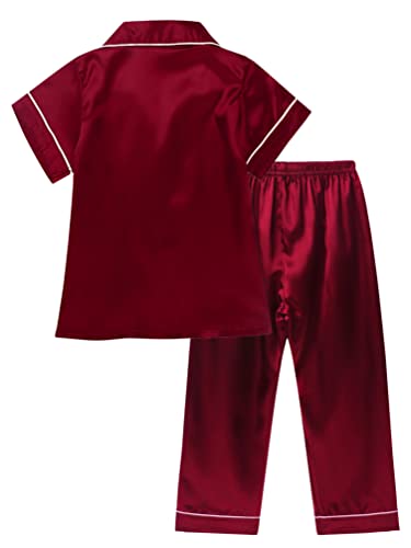 YiZYiF Pigiama Due Pezzi Bambine Bambini in Raso di Seta Pigiama Manica Corta Camicia da Notte + Pantaloni Lunghi Outfits Accappatoio Pigiama Estivo Primavera 1-12 Anni Rosso 5-6 Anni