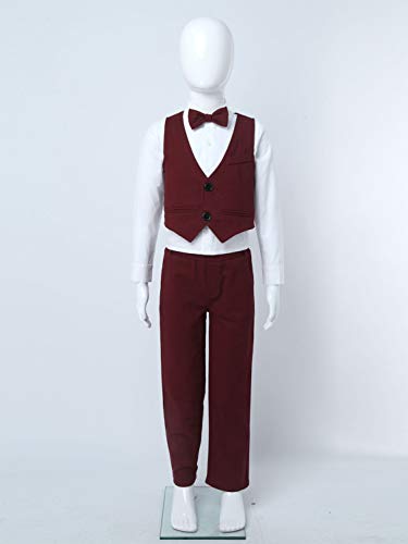 YiZYiF Smoking Abiti Bambini e Ragazzi Completi e Coordinati Camicie Cravatta a Farfalla + Panciotto + Pantaloni Vita Elastici Outfit Gentleman Tuta da Cerimonia Nozze Borgogna 1-2 Anni