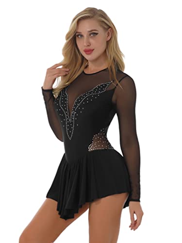 YiZYiF Vestito Pattinaggio Artistico sul Ghiaccio con Strass Donna Body Balletto Danza Classica Ginnastica Abito da Ballo Ritmica Skating Dress Leotard Bodysuit Dancewear Black 523 L