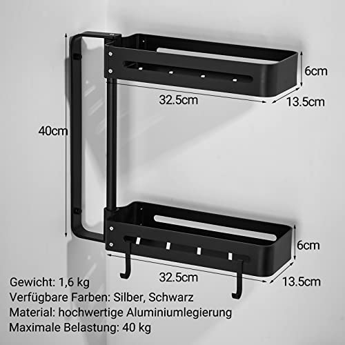 YJHome Scaffalatura angolare a doppio strato, girevole in alluminio, scaffale angolare da parete multifunzione (nero)